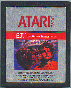E.T. is considered by many to be the worst game ever made in the history of video gaming. The game was licensed in 1982 and released just before Christmas after almost no time for development of the game itself. Atari thought that with the success of the movie, the game would be one of their biggest sellers, so they produced millions of copies and sent them out to the stores. It flopped. It bombed. It sold poorly...but it did sell. There are copies of this game everywhere. It is usually valued at a higher price than Combat (which was issued with the system for many years), but it seems to me that there are almost as many copies of E.T. floating around out there as there are of Combat and Combat is (in my opinion) more fun to play. The