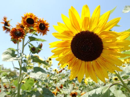 SUNFLOWERS provide a sunny face of yellow to the back of any border and, as they fade, the birds will have a feast on the seedheads.