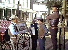 Back in town, as Jarrod leaves his office to go meet with his brothers at the saloon he crosses path with a bearer of bad news. Rogers (Bill Zuckert) explains that the Lasso Bridge was blown to smithereens in the last explosion, thus forcing the brothers to use an alternate route which will take them longer to reach the fire.
