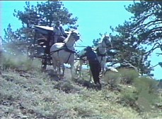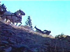 With Jarrod in the back to steady the crates, Heath brings the hearse down very slowly. Nick stands in front of the team to exert a breaking force. Halfway down, he stumbles and falls but luckily Heath is able to rein back the horses and bring the carriage to the bottom without a scratch, though on the verge of a heart attack.