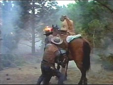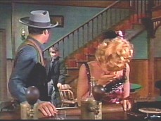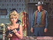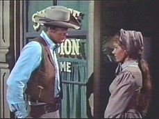 On his way to the saloon he runs into missionary Bridget Wells (Judy Carne) who apologizes for her rude behavior the other day when he saved her from the two miscreants Gabe and Chuck. She invites him back to the mission where she relates the story of her family’s slaughtering in Yaqui territory. She shoulders the burden of having been spared, hence the reason why she became a missionary; to make up for what she believes is an injustice. She steals a kiss from Heath hoping to draw a bit of his strength.