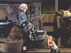 Silas tries his best to dissuade Victoria to ride into town to see her sons. His insistence pricks her curiosity as to the real reason behind his anxiety. He finally confesses to the boys’ agreement to carry the nitro up to the fire. Although her mind urges her to go, her hearts tells her to remain at the house for her presence will only add to her sons’ torment.
