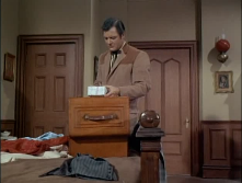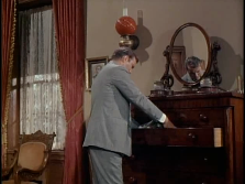 As he heads out the door, another suitcase catches his attention. With a faltering step he walks over to it and to his horror finds the counterfeit money, thus lending credence to Monroe’s suspicions.