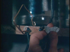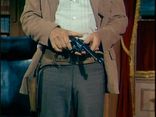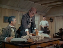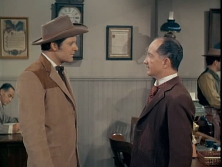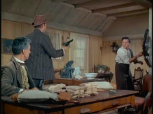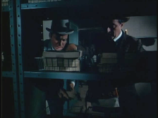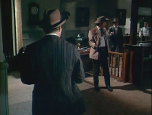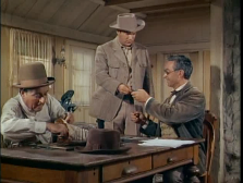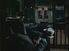 As Ketchie gives him the first number of the combination, outside the sheriff (Michael Harris) makes his round. They hide behind a chair waiting for him to leave and go back to their work.