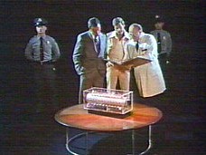 Oscar convenes an urgent meeting with nuclear experts to discuss the situation. He learns that several thefts of components and chemicals involved in the making of a nuclear bomb had been committed in recent weeks, but that in all evidence the conspirators were missing the crucial and highly intricate device of the bomb, which is the detonator. One of the member, Dr. Clea Broder (Carol Lawrence), receives an urgent note notifying her of the imminent arrival of that device in question.