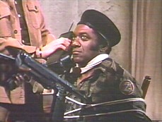 Meanwhile, Jajamin hurries to the mercenaries’ base camp to report the parachutist to Major Chooka (Scoey Mitchell). Right away he orders his men to patrol the area.