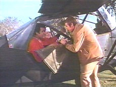 As Steve tries to locate the missing plane with a receiver tracking its signal, he encounters two nuns running after a goat. He does his best to explain to the two suspicious women that he’s here to find a small aircraft, using funny gestures complete with sound effects as a mean of communication. After verifying his ID, Sister Annette (Madge Redmond) and Sister Terese (Susan Gay Powell) drop their guard and adopt their native American tongue. They invite Steve to follow them to their mission.