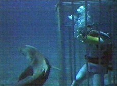 Once the missiles are loaded on board their take-over operation suffers a slight setback when a bathysphere, with onboard Rudy Wells, is lowered to the sub. With ultra-sounds Cynthia orders the shark with the brain implant to sever the cable, sending the bubble crashing onto the ocean floor with serious damages.