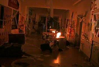 Buffy, Spike, Robin and Andrew arrive at the school and find it destroyed by student riots. Andrew tries to film their walk through the halls as the surprisingly strong students attack. After they finally subdue enough students and get to the basement access, Spike and Robin staying in the halls to guard the entrance while Buffy takes an unwilling Andrew downstairs. Andrew revisits his memory of killing Jonathan, but he remembers being forced a lot harder than he actually was to kill. Listening to his explanation, Buffy comments on how she saw Robin get affected by the seal and Andrew suddenly changes his memory explanation to fit with Robin's actions. Buffy and Andrew enter the basement room carefully and find the five students standing around the seal, their eyes freshly cut and sealed like the Bringers. In the Summers' basement, Xander and Anya revel in the aftermath of having sex again. They start to talk about moving on with their lives and then fade into an awkward silence.