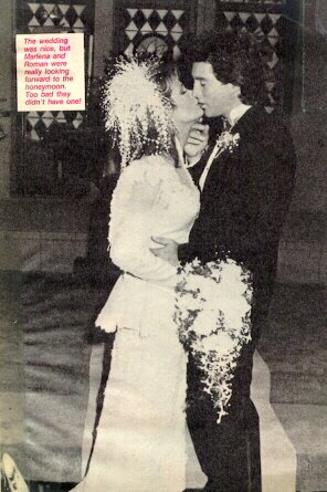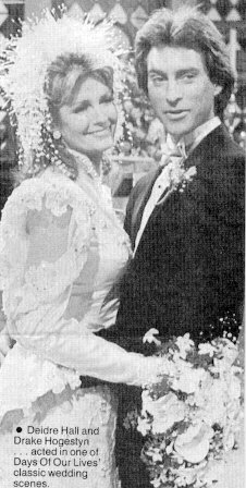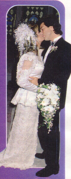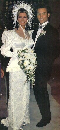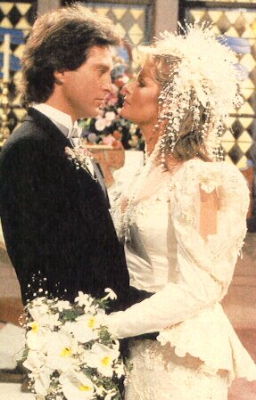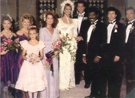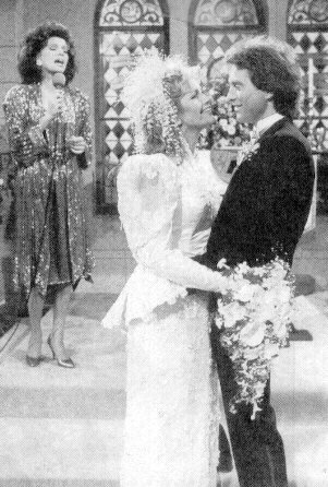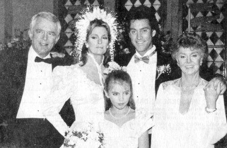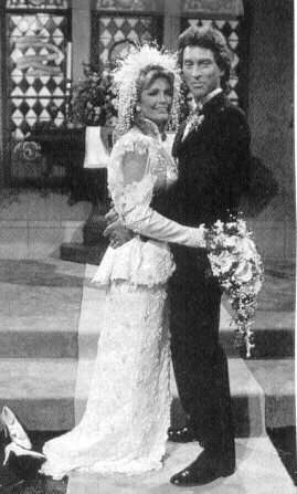 Matron of Honour Maggie Horton and Best Man Abe Carver attend to the Bride & Groom Liz Curtis arrived too late to sing at the wedding an old college friend stepped in to sing the couple's song " UP WHERE WE BELONG" The Happy Couple