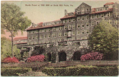 Buck Hill Inn is the site where a number of people have met bizarre fates. One victim, whose name is being withheld, was on his way out of the hotel when two gunmen pulled up in a black sedan and fired five .38 caliber rounds before speeding away. A drunk employee fell to his death from the fourth story, apparently while trying to get into the room adjacent to his. His body was found the next morning impaled on an iron railing. A visiting psychic reported that his death could have possibly been a suicide. In 1968, a local cabdriver was found alongside the hotel, shot to death in his car. One man was murdered in the laundry tunnel, allegedly because he was unable to pay his gambling debts to the Mafia. The case was never solved.