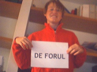 moet je een blad papier in de foto vasthebben waar ‘De Forul’ opstaat.