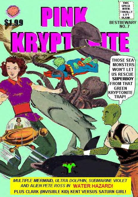 That concludes the tale of the Legion of Super-Vandals’ "Water Hazard." But there is one small point to be submitted for your consideration. We may assume that Superboy’s sperm is as super as he is. Ordinarily the little wigglers, if ejaculated in salt water, would very quickly die. Even under optimum conditions, they would soon tire and die, with only one actually reaching the goal. But if Superboy’s sperm was invulnerable, and super-strong, we might think that they would last a long time, and be able to swim for long distances in the medium of salt water. (We would also assume that they could not actually fly, since they don’t have brains.) Eventually they would die, of "old age"; that is, a spermatozoa’s life-span is not very long, even if "super". And there was a certain amount of green Kryptonite in the ocean, against which some would eventually come to rest. And some would undoubtedly swim straight down to the bottom, and then not "know" what to do, and so perish. Some might be eaten by fish, which might not be that pleasant for the fish.