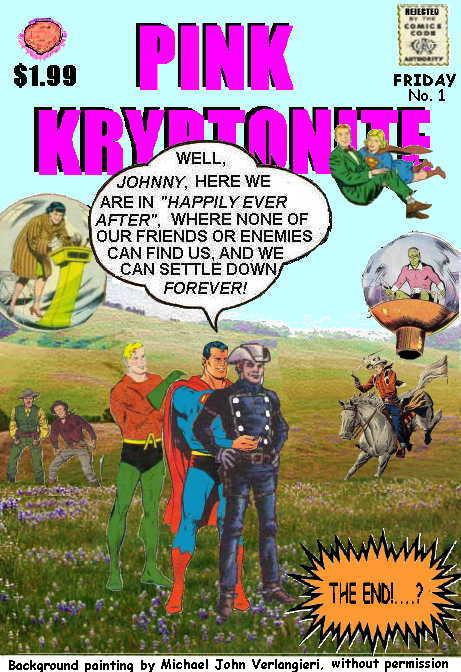 Jimmy waved as Supergirl carried Lois out the window and flew away. He sighed and looked at the headline of his copy of the Daily Planet: "All Forms of Kryptonite Turned Pink - Still A Mystery".