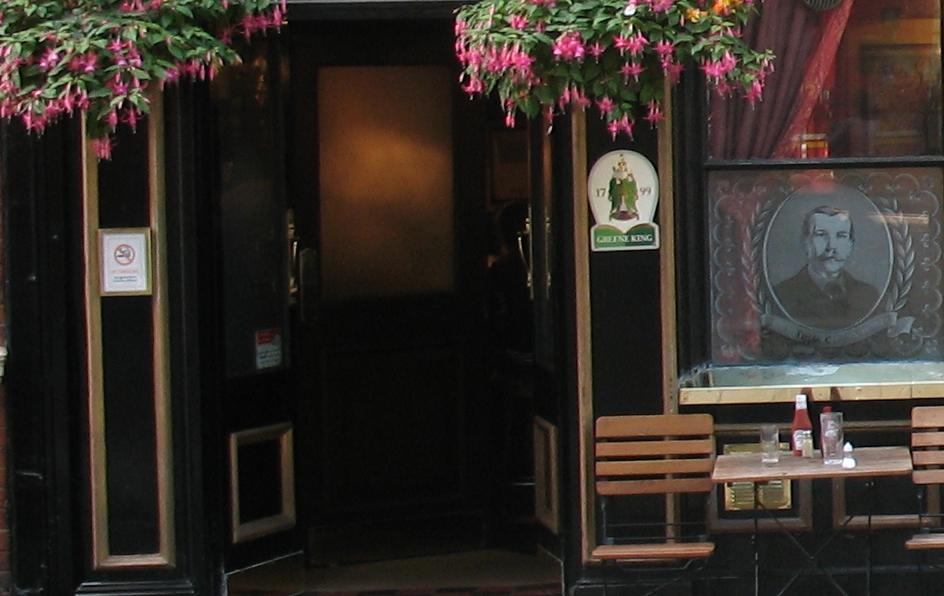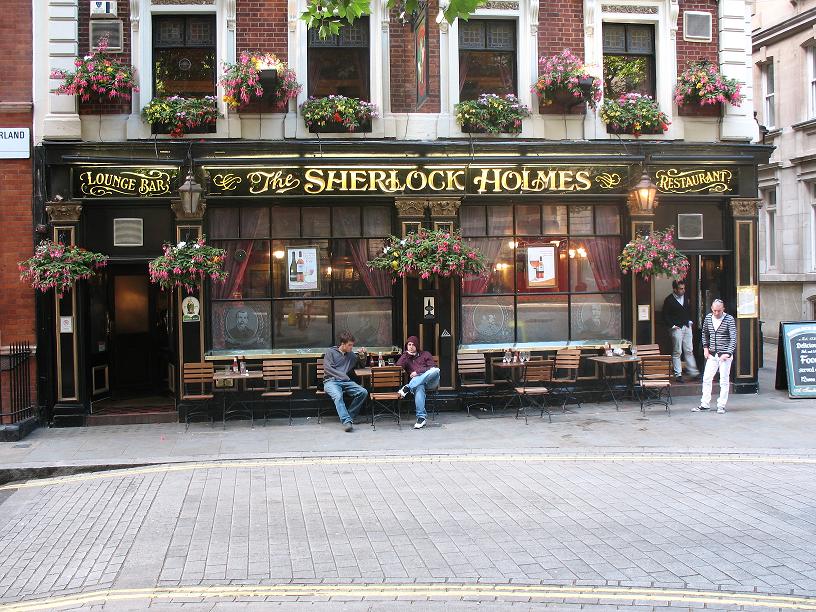 Narrow Side View of the Sherlock Holmes Restaurant Sign
