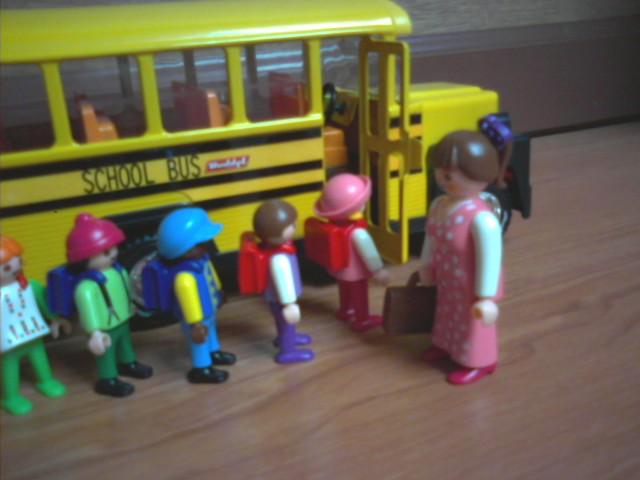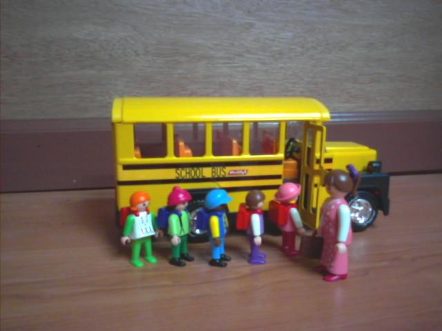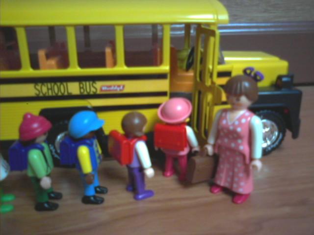 I bought this cute toy school bus years ago at an outlet store. It's just the right size to have my Playmobil children posing with it.