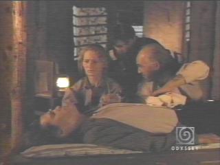 JaMarieHickey: Yuck! I know. I don't know how they got it down!! NightinGail777: I think the doctor is a kind man. He really tells the leutienant(?) off a couple of times. JaMarieHickey: I know. Trying to get that one guy (I can't think of his name) to stand up for himself and the other soldiers. NightinGail777: What about the man that comes in Emma's room........Jimmy to the rescue!!!