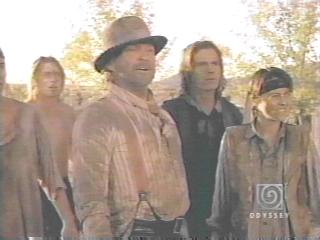 JaMarieHickey: I like how all the boys were camped out waiting for them. NightinGail777: When Malone falls off his horse he runs in the bushes to hide......but Teaspoon finds him.