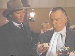 JaMarieHickey: Feeding his face....he's really shoving the bites in. hehehe :) NightinGail777: I love when that girl comes up to Buck and ask him about scalping people......the look on her face when he tells her just one-him and then he looks at Ike.