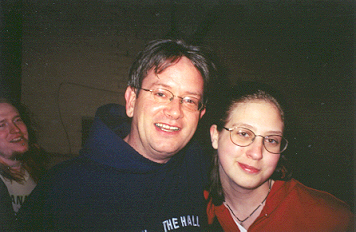 That was probably a dumbass remark but what the hell was I going to say? How can one keep their composure when talking to Mark Mckinney?!!?!! Besides, I don't think he heard me. Then he signed stuff for other people and Molly asked him if Bruce was in Anne of Green Gables. We were discussing it before and I said "Yeah. He was." And she's like "I'm pretty sure it was him. I'll ask Mark though to see for sure." Couldn't ask Bruce 'cause he was there and gone pretty fast. So Mark goes "Yeah. He was." So, he was about to leave and I guess I just looked at him 'cause I remembered I wanted to ask him if after every show Kevin always left right away. Mark just looked right back and me as if to say "Oh. Do you want to say something?" or something like that. hehe. I say instead "Can I have a hug?" He goes "Sure." But as he was saying this he was walking and almost tripped off the platform! The poor guy! I said "I'm sorry." And then he gave me a hug. Kind of a sideways one, but a little squeeze in there as well...a damn real hug! Holy fucktard! I hugged Mark McKinney!