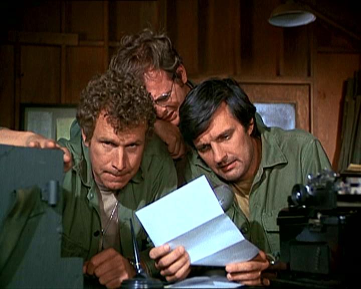 In Post-Op the next day, Father Mulcahy gives out the mail, and Cowboy is eager to get a letter from home, but his wife hasn’t written. He tells Hawkeye that he’s worried that she’s having an affair, and she hasn’t written for ages.