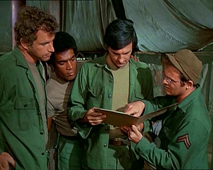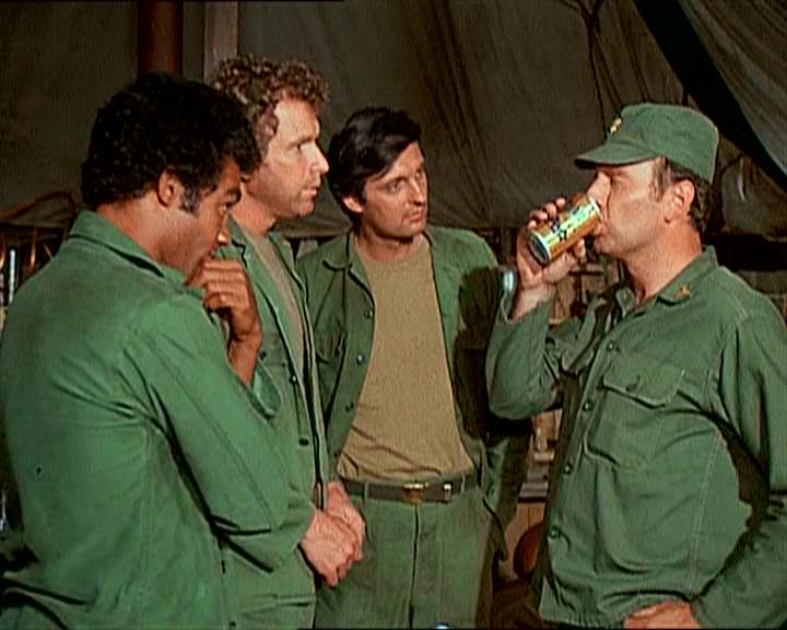 Back in the Swamp, Hawkeye, Trapper and Spearchucker are having a beer-tasting session when Frank arrives. They tell him something is wrong with the beer and ask him to help them decide what it is. They have Frank drink beer from several different cans, and it’s not long before he needs to visit the latrine.