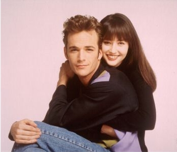 Okay so I've been watching repeats of Beverly Hills 90210 (they better put those on DVDs soon) and noticed that mister Luke Perry is reasonably babelicious. Technically he does wear makeup. And I know he doesn't have long hair but HE DOESN'T NEED IT! That's how cute he is! He doesn't even have long hair and I still find him cute!