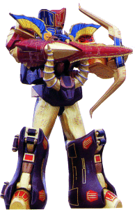 The Pegasus Megazord is the combination of a powered up Red Lion, Shark, Tiger, Falcon, and Elephant.