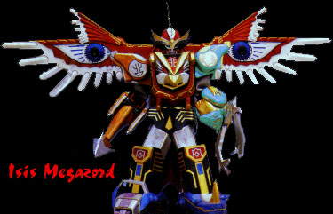 The Isis Megazord is capable of battles in flight as well as on the ground. It is comprised of the Rhino, Armadillo, Giraffe, Deer, and Falcon.