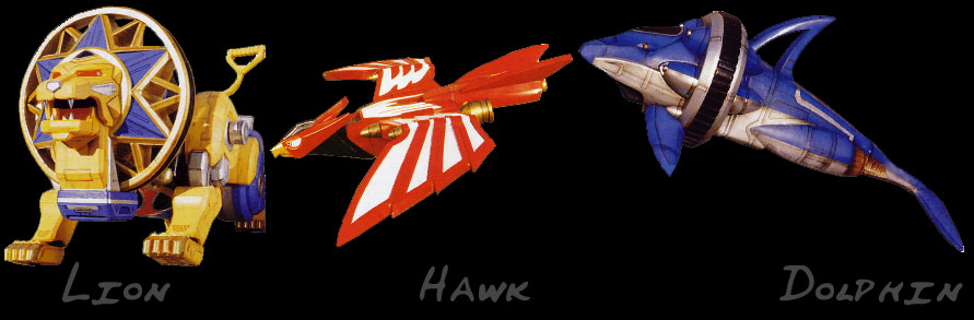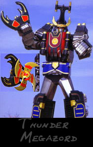 The Thunder Zords (not to be confused with the MMPR season two Zords) are utilized by the Thunder Rangers. Apparently it has the ability to steal Power Spheres that Cam sends to the Storm Megazord.