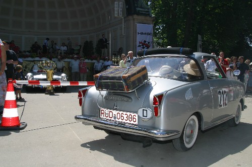 Nachdem Sektempfang gings im Autocorso durch Wiesbaden zurück zum Kurhaus, wo der Zieleinlauf stattfand.....