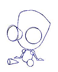 First, draw Gir's head and body with centering lines. Add basic arms and legs.