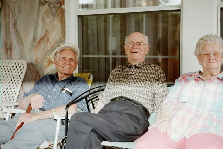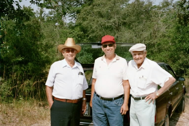 WL, Bill and Roswell Rigsby visiting old Henry Hefley home site June 2001. |