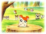 Merica is very bright and wears an American print clothes with an American flag hat. She appeared in the Hamtaro Movie. She is a musical performer in both Ham Ham Land and real world. She is pink and has 3 other sisters who play with her. There names are Gu-chan, Nonno, Ain-Chan.