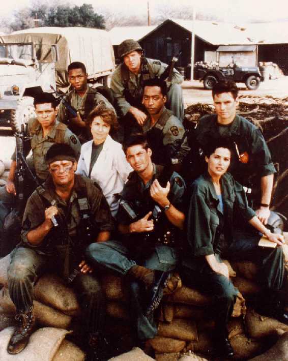 (middle, l - r) - Ramon Franco as "Cpl. Alberto Ruiz", Betsy Brantley as "Dr. Jennifer Seymour"