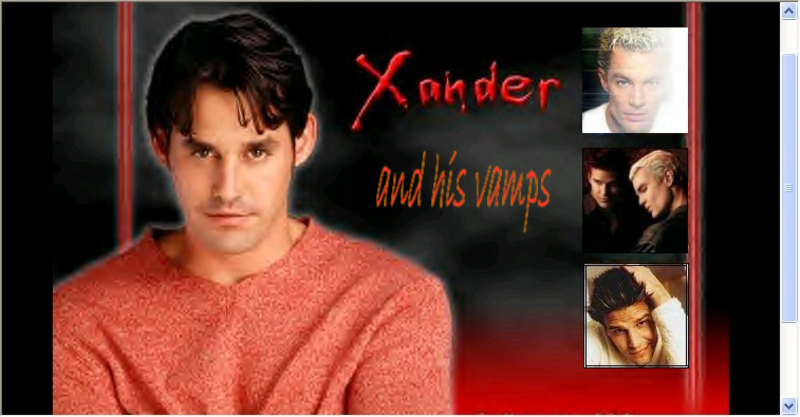 This is the site where the fanfiction of xandercordy1 lies. It is mostly X/S/A but there are going to be X/A and X/S stories as well. There is angst, death, romance, surprise and happiness (I hope), something for every reader that loves Xander and one or both of the vampires he does. This site is an adult site so all little kiddies must run away now...that doesn't mean us adults who act like children, just anyone under the age of 21. This site also features m/m sex so anyone repulsed by that needs to leave too, although I can't for the life of me see how anyone could be. Two gorgeous males (or three) together, yummy. Anyway, to each his own. For those of you who love these three guys, stick around and read something. I hope you enjoy the stories as much as I have enjoyed writing them. Let me know. I live for feedback. The pictures on this site were made by Bob the Spaztastic Penguin, except of course for the pretty little baubles I have won, and my picture for Long Route which was made by the wonderful Sukiblue. If I have not credited someone for their work, please let me know and I will quickly fix that. Also, I have provided a link to Suki's fanfiction so please check out her stories, if you haven't already. They are great and I highly recommend them. What? You thought I just wrote fiction and didn't read it? I love reading it almost as much as writing it. *BG* All the characters in my stories (for the most part) belong to the great Joss Whedon and ME. No copyright infringement was meant, I just love to play with the boys. Also, any clips that were used for my videos are also Mr. Whedon's and ME. Most of them go along with my story "Long Route" but some are not and they can all stand alone. Well, onto the reading and watching of videos. Hope you enjoy!
