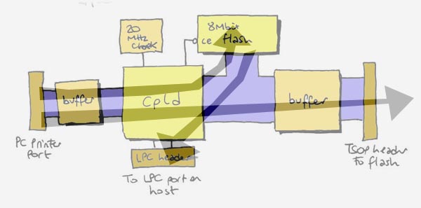 3) The flash on the Milksop can be read and written by the LPC port (up-down