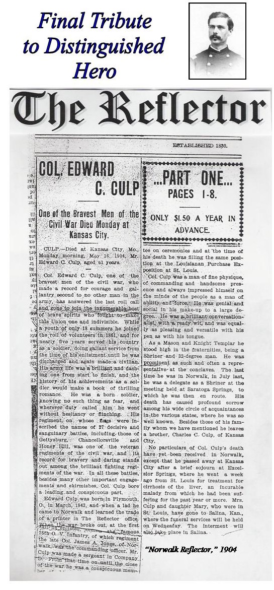 "Norwalk Reflector" cites Lt. Col. Culp as One of the Greatest in the Civil War