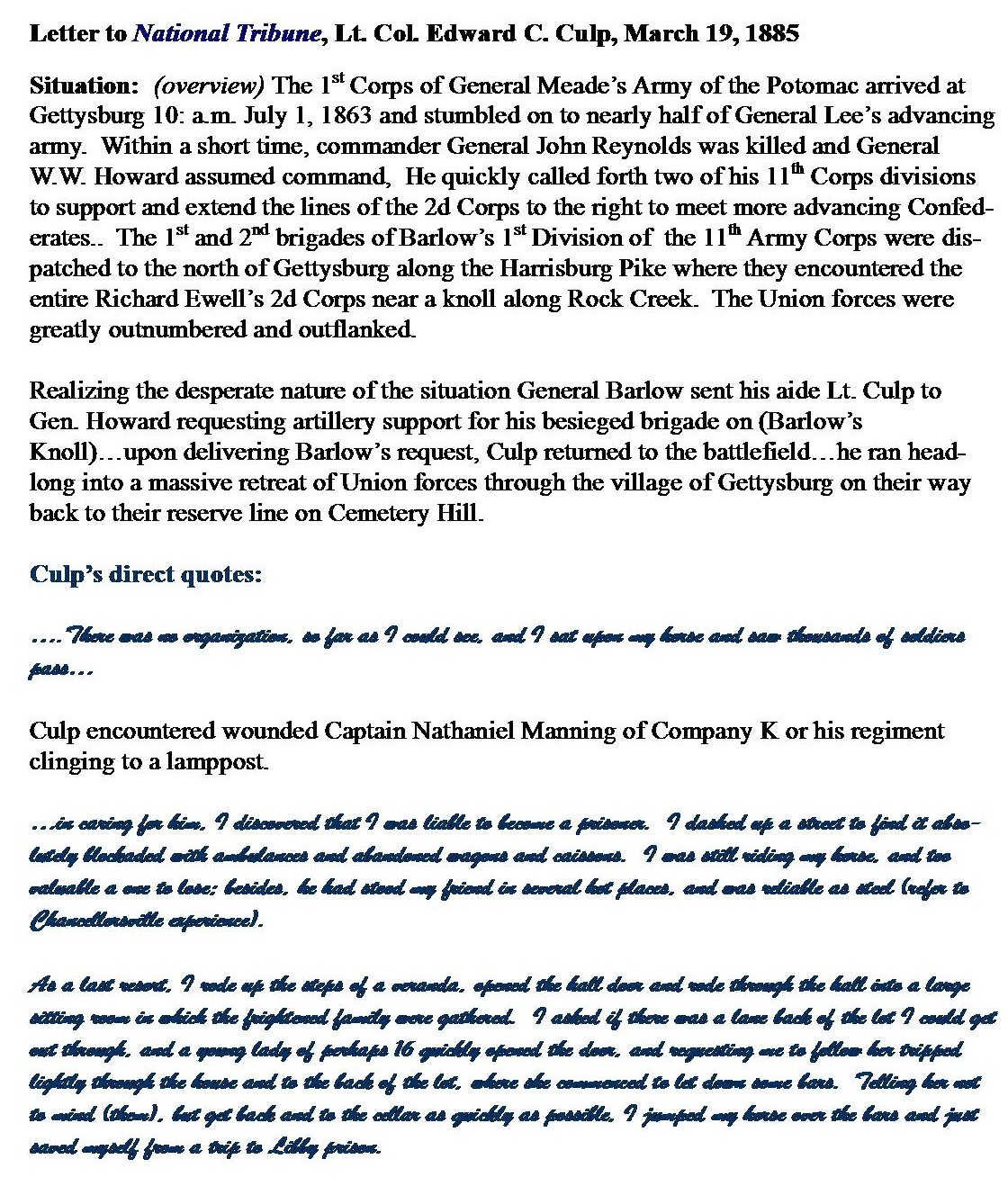 Gettysburg: Culp's Reflections on July 1, 1863