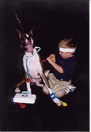 He came by his name because my daughter happens to love the movie Tombstone and her 'beloved' character is Doc Holiday. Since this was the first litter for both Khan and Sara I decided to go with a theme of gambling. It is always a 'throw of the dice' when you breed boxers or any dogs for that matter. Even starting with two wonderful boxers, you are never sure what the fates will provide. This time the fates gave me Doc. He is a very nice flashy brindle boy with a solid bite and an attitude that makes no doubt that he should be the center of attention!