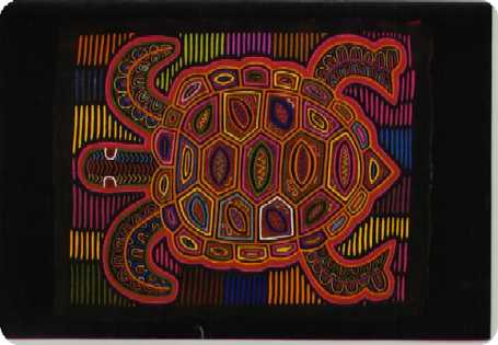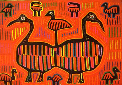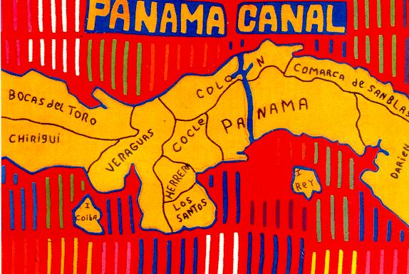Molas of the San Blas Island Indians . . . Pictured above, is a Mola map of Panama.The San Blas are unique islands; life there goes on much as it did when Columbus sailed into the Bocas del Toro area 486 years ago. The short, industrious Indian population is known locally for its self-sufficient and democratic outlook. The San Blas live largely in 42 settlements scattered through 365 islands. They are adopting some modern conveniences, but socially they are selective, retaining many tribal customs and ceremonies.