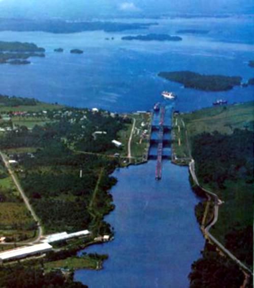 | Overview of Gatun Locks looking South. | Overview of Gatun Locks looking North. | Sunset over Gatun. | Gatun Cemetery. | Gatun Elementary School. |