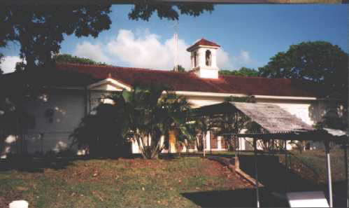 | New Town, Gatun in the 60s. | Gatun Union Church. | The inside of Gatun Union Church. | My older sister Chic, Boy dog and I, on the street in front of our house... Gatun Union Church in the background, 1950s. | The duplex we lived in.... |