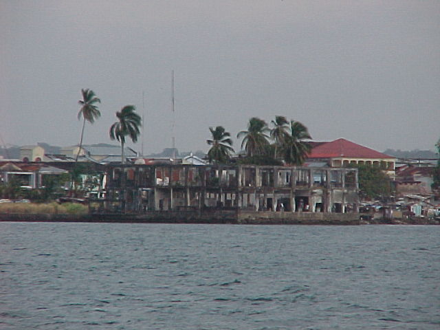All that is left of the old Strangers Club in Colon . . . taken from the anchorage, Feb. 1999.