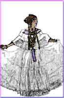 If we pay special attention to the article in the Diario de Madrid referring to celebrations here in Panama mentioned by D. Samuel Lewis, we find it speaks of thirty women of the town richly dressed in polleras. It does not say the higher class, but the townspeople. Reclus also referred to the town: "the colored women wear the pollera" and "the women wear the old dress of the criollas." Who are the criollas for Reclus? The person born in America of Spanish descent? The native aristocracy? From the drawings he presents in his writings, the criolla appears to be neither Spanish nor the native aristocracy. The pollera was the dress of the common people, and here lies its strength, its continuity, and its permanence. As a creation of the common people, it reflected the vitality and spirit of that class, and extended into every city, town, and farm. From its humble beginning the pollera gradually was adopted by the women in the upper classes. Once accepting the pollera, this class adopted it as their own almost as if it had always been their traditional costume. Today the daughters of the aristocracy are just as proud to wear their polleras during days of fiestas as the women in rural areas.