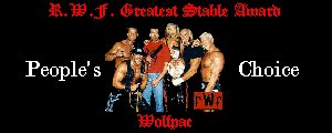 | The Wolfpac - Winning both awards was surprising to some people, but I think every old school Robo Wrestling Federation wrestler knows why. Alot of you have seen the Unstables who are a great stable, and came kinda close on the voting. But, none of you have seen a stable like the Satanic Wolfpac. They were weaker in their later years, and probably shouldn't have came back. But, the strong years with Memnock as Leader, Caladan as Enforcer, Dutch Destroyer, MemnocH "The Devil", and Skitzo Sam was just completely abusive to other stables and wrestlers. In this crew, all won the R.W.F. World Title at least once. 3 are R.W.F. Hall of Famers, one has a Memorial in his name, and the other wasn't around very long..but was the cause of Bret Hart's death. For those of you who remember that match, I'm sure you remember it got very ugly..very fast. This stable was evil, and seemingly just kicked ass. Dav tried to fight against them, but had no chance. They devoured wrestlers, doing what they wanted to whoever whenever. Stables will come and go, but as for domination, teamwork, and all out power. No one, and I mean no one will come close to what the Wolfpac had. Til they split up, no one wanted to fuck with these guys. Who knows what would have happened if the Wolfpac would've stayed together. There's honestly no telling what heights they would have went to. I think everyone will remember the terror of this once cultlike stable. |