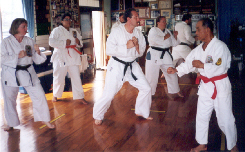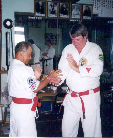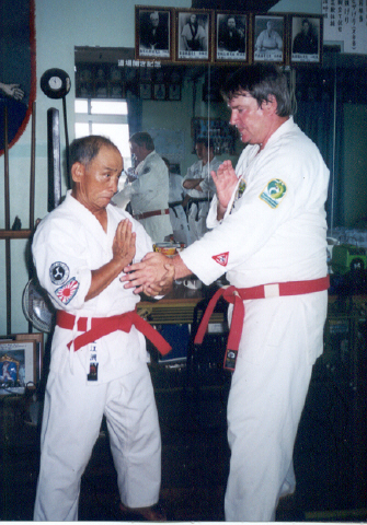 Master Uezu was a great host and a fountain of information and knowledge. It was good to finally get the real history of Isshinryu. He also managed to conduct a few "Special Training" sessions for us. .