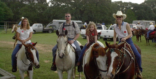 Lady has remained a small horse and we waited until she was 3 before trying to break her to ride. That day has finally come and we have taken her on 2 trail rides. She did just fine and even loped a short distance without resistance. This was the Salt Grass warmup ride in November 2004 ~