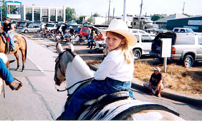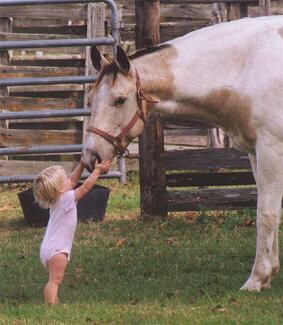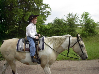 When Jacob was 2, he rode Sunday one full day on the 1999 Salt Grass Trail Ride. Although Sunday is 15.1 hands tall, Jacob rode her without aid or a pony rope. Sunday is an exceptional horse!