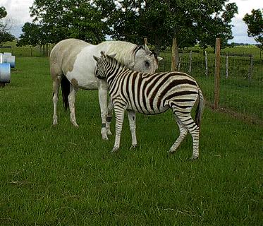 The other horses here on the farm are very curious about the zebra and they will sniff each other through the fences.